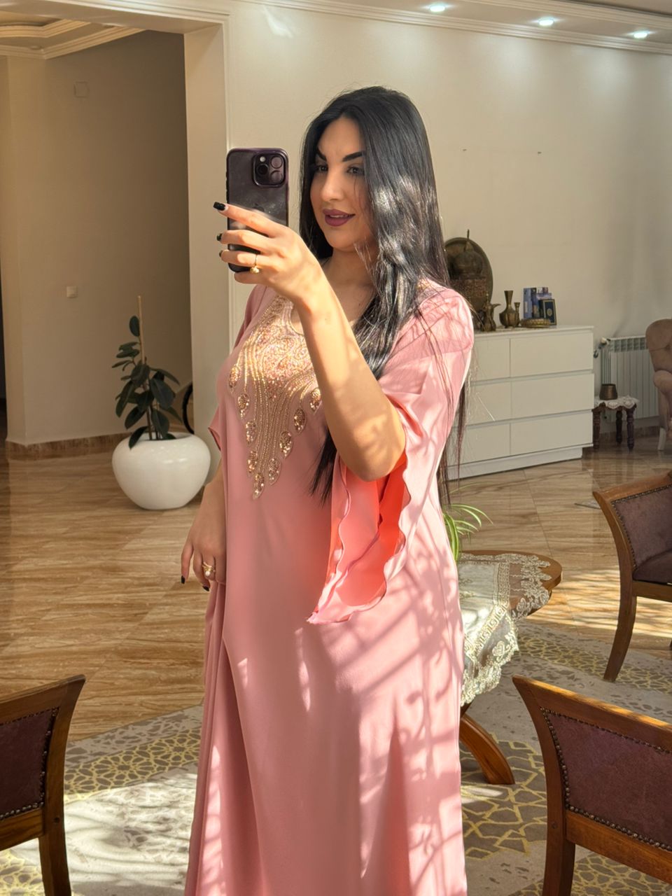 Cole perlée avec découpe évaser en cloche